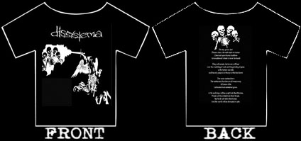 Front = EP cover, Back = "Eye of the storm" lyrics and skulls.